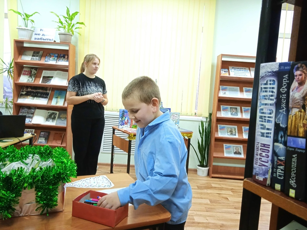 Сегодня в поселковой библиотеке состоялось ретро-путешествие "История новогодней ёлки". Из видео сюжета учащиеся нашей школы-интерната узнали о том, как появился праздник Новый год, когда и как люди стали наряжать ёлку. Какие игрушки на неё вешали. Затем ребята отгадывали новогодние загадки, приняли участие в весёлой физкультминутке, рисовали украшения для ёлочки. Но это было ещё не всё, веселье продолжалось. Дети на ощупь угадывали предмет в мешке, бросали бумажные снежки, а на последок создали красивую новогоднюю открытку. В конце мероприятия его участники получили сувениры от ёлочки.
