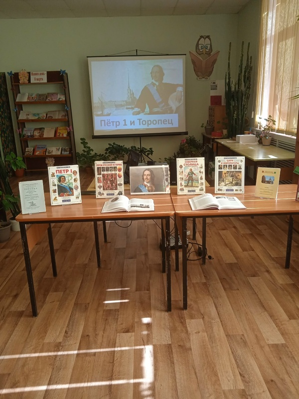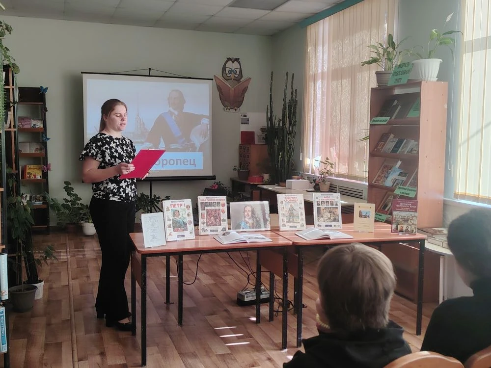 Плоскошская поселковая библиотека работает по краеведческой программе "Их имена в истории края". Сегодня для учащихся Плоскошской специальной школы-интерната состоялся исторический экскурс " Пётр I и Торопец". Участники мероприятия познакомились с личностью российского императора. Рассказ библиотекаря сопровождался просмотром небольшого видео о Петре Великом.Рассказывая о посещении Петром I нашего города Торопец, библиотекарь подробно представила книжную подборку по теме мероприятия.